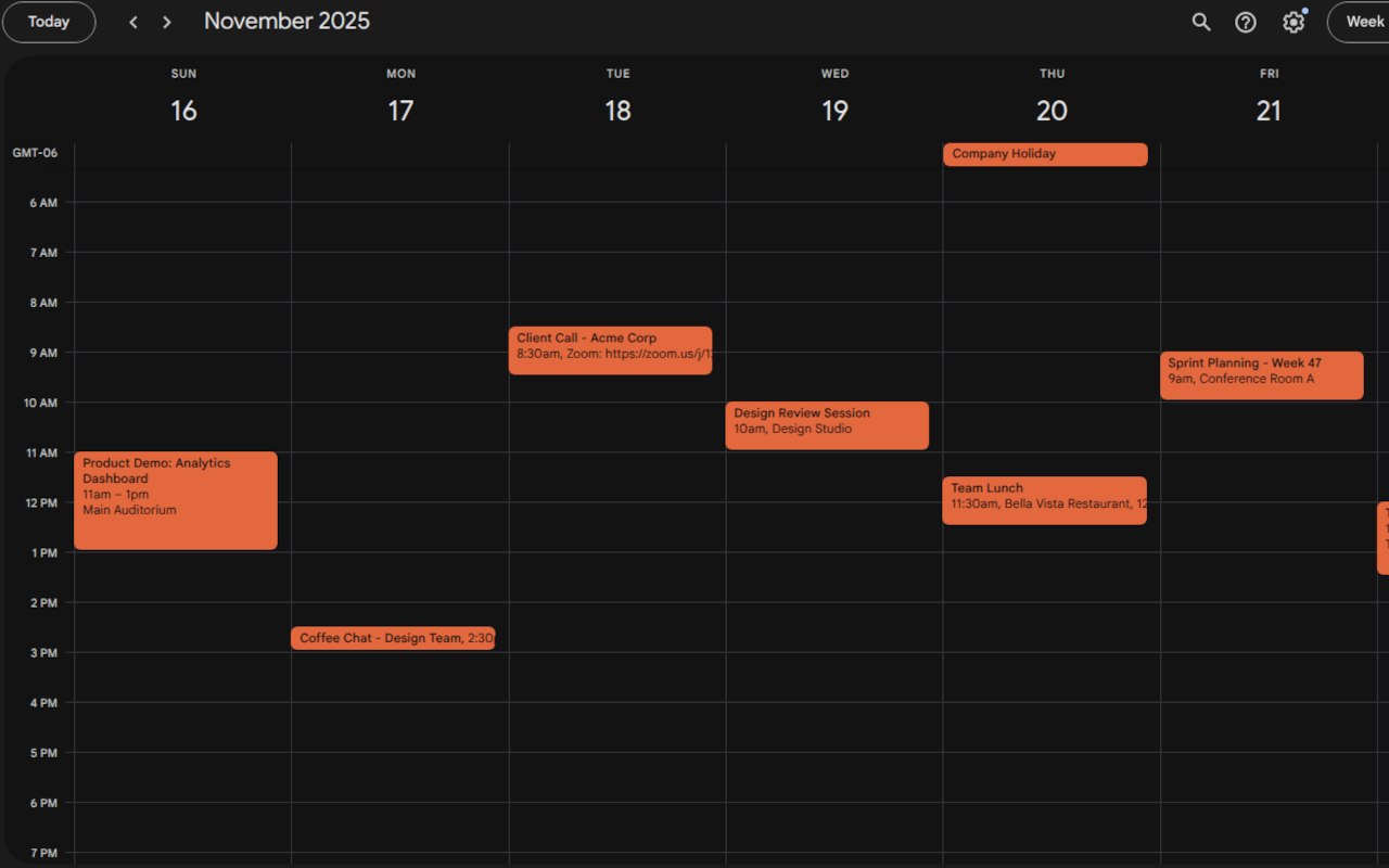 Secure OAuth 2.0 authentication with Google Calendar API integration. Supports all standard calendar event features including recurring events.