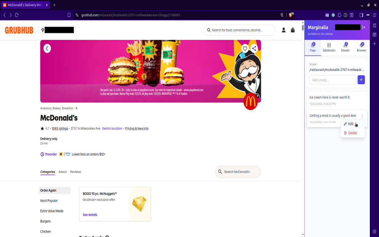 Notes automatically organize by page, subdomain, domain, or available everywhere. The right notes appear at the right time, based on where you are on the web.